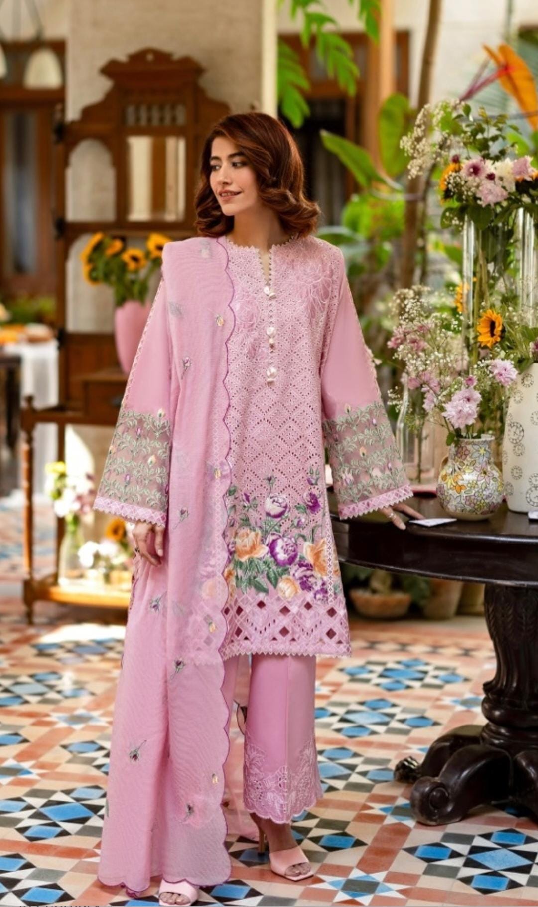 • Embroidered lawn back left panel